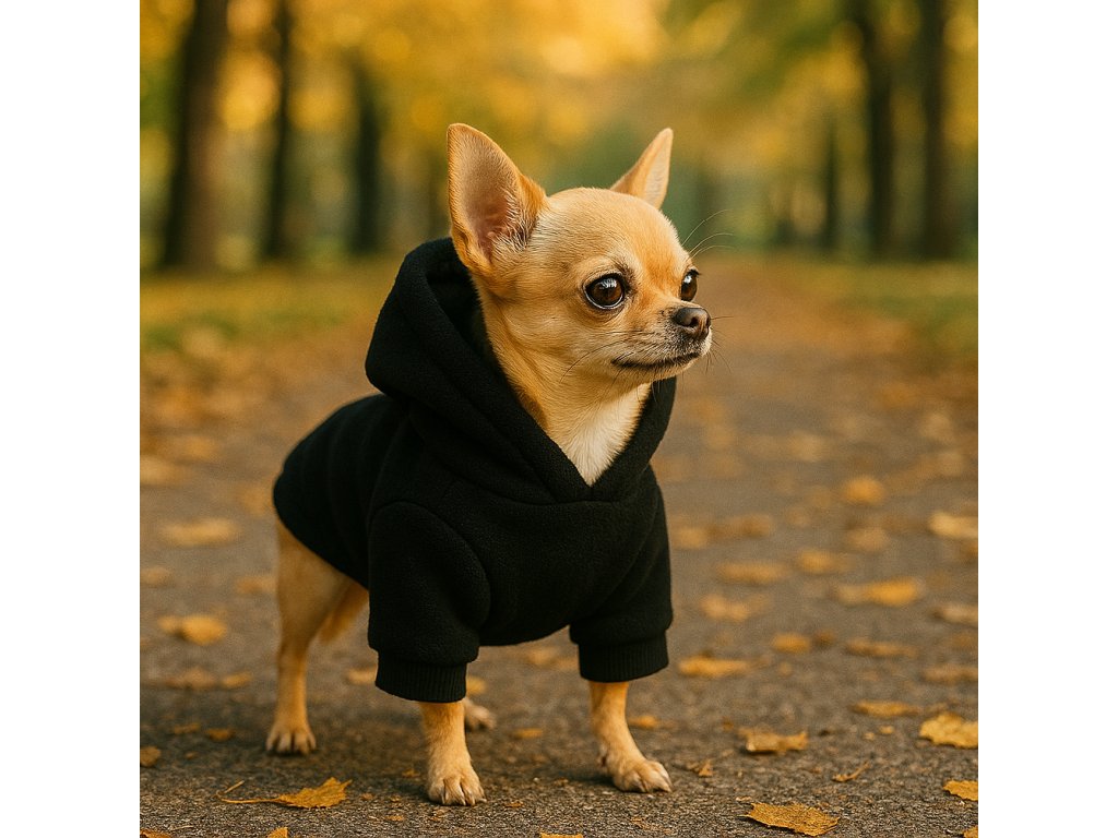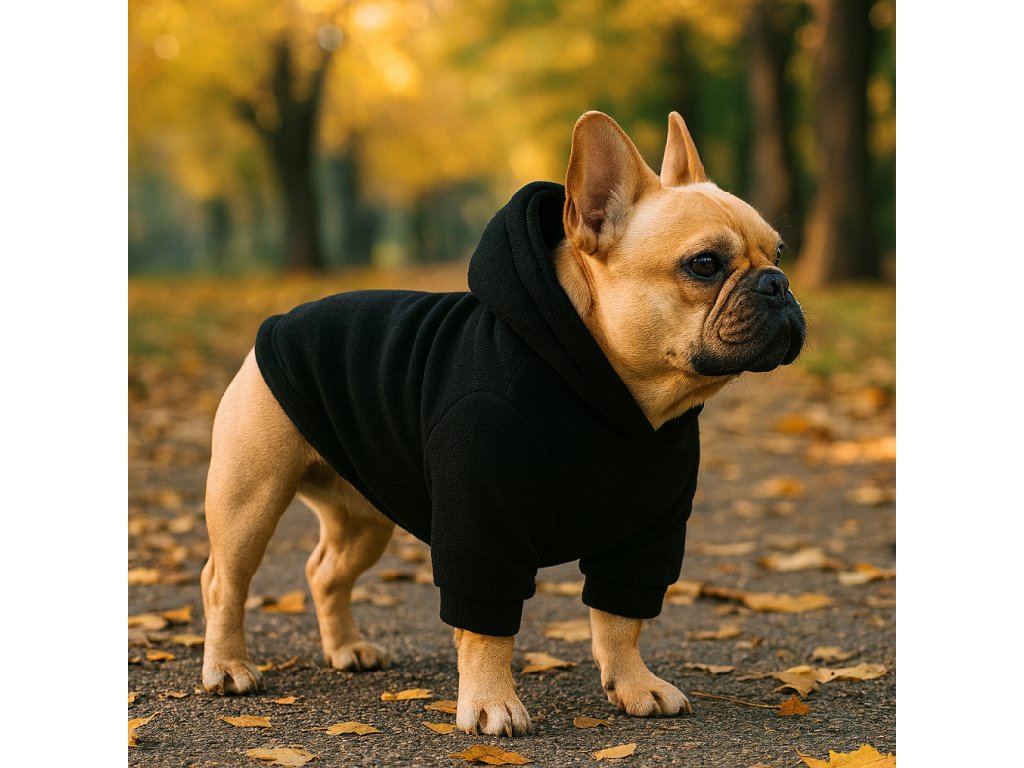 Černá mikina pro psa je vyrobena z hřejivého wellsoft fleece, který poskytuje mimořádný komfort a ochranu před chladem. Ručně šitá kvalita zajišťuje dlouhou životnost a možnost ušití na míru zaručuje perfektní padnutí. Lehký a prodyšný materiál umožňuje volný pohyb psa, zatímco stylový design s kapucí dodává mikině moderní vzhled. Mikina je také snadno udržovatelná, odolná proti mačkání a zachovává si své vlastnosti i po opakovaném praní, což z ní činí ideální volbu pro každodenní použití.