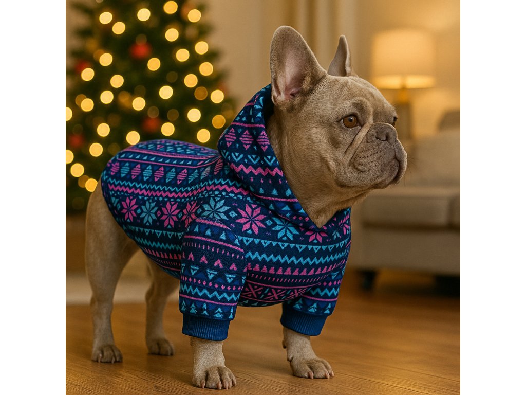 Chladnější dny nemusí znamenat nepohodlí pro vašeho pejska. Tato mikina pro psa je ideálním řešením, když chcete spojit funkčnost, pohodlí a styl. Patří mezi oblíbené psí oblečky na zimu, protože je vyrobená z kvalitní teplákoviny s počesanou vnitřní stranou, která hřeje, je příjemná na dotek a zároveň odolná. Díky modernímu střihu s kapucí působí jako originální a designové oblečky pro psy, které jsou praktické i krásné. Precizní ruční šití v České republice řadí tento model také mezi luxusní oblečky pro psy s dlouhou životností.