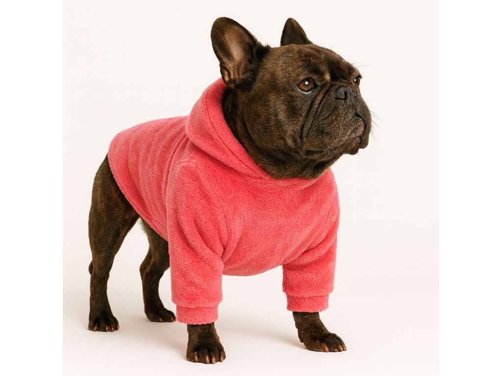 Růžová mikina pro psa je vyrobena z hřejivého wellsoft fleece, který poskytuje mimořádný komfort a ochranu před chladem. Ručně šitá kvalita zajišťuje dlouhou životnost a možnost ušití na míru zaručuje perfektní padnutí. Lehký a prodyšný materiál umožňuje volný pohyb psa, zatímco stylový design s kapucí dodává mikině moderní vzhled. Mikina je také snadno udržovatelná, odolná proti mačkání a zachovává si své vlastnosti i po opakovaném praní, což z ní činí ideální volbu pro každodenní použití.