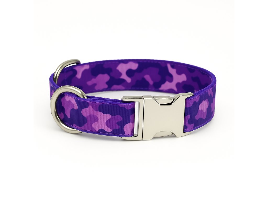 Ručně šitý nylonový obojek pro psa - Fialová kamufláž